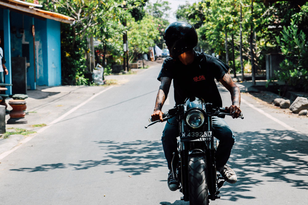 Mélange de rêve américain revisité et de culture balinaise bien ancrée, leur quotidien fait le grand écart entre coutumes indonésiennes immuables et mode de vie à l’Occidental sur fond de Rock anglais, le tout arrosé de Bintang fraîche. Esprits libres et créatifs, non satisfaits du banal scooter sans goût arboré par tous, ils vouent un culte assumé aux bécanes vintage qu’ils désossent eux-mêmes régulièrement dans de petits garages noircis de crasse, jusqu’à les réduire à leur plus simple expression pour enfin les faire renaître de leurs soudures et leur donner un nouveau souffle.