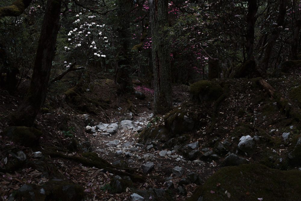 Les rhododendrons bordent le sentier du retour. Ce voyage m’a imprégné d’un nouveau souffle.