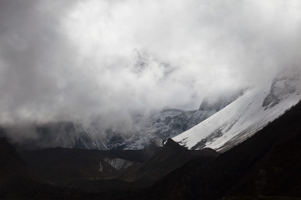 Il est 4 heures du matin, le jour va se lever et il faut franchir le Larkya La pass situé à 5160m. La luminosité est faible mais le paysage qui se dévoile progressivement stimule la volonté. Au Larkya La pass, ce n’est pas le col en lui même, jonché de drapeaux de prières, qui me reste en mémoire. Mais plutôt la vue de ces sommets recouverts par les neiges qui sortent timidement des nuages.