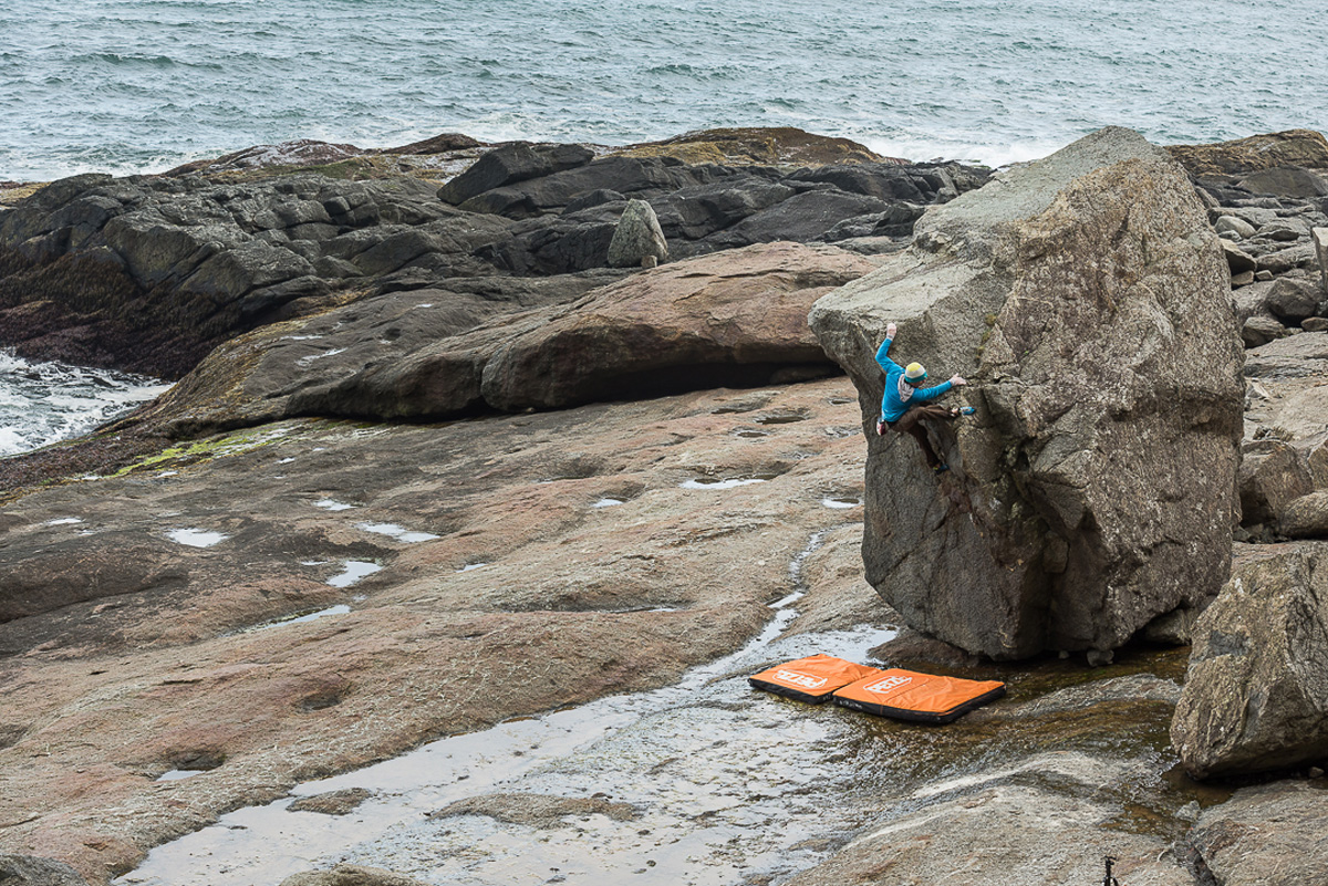 L’échange avec les locaux est fabuleux et le soir venu, nous nous retrouvons dans la cabane pour boire quelques bières et fêter la performance du jour. Eytor nous parle alors d’un spot de bloc isolé à la pointe Sud-Est de l’île. Le site est encore confidentiel, aucun topo n’existe, mais Eytor répertorie méticuleusement tous les passages dans un coin de sa tête. Plus de deux cents blocs ont déjà été ouverts, mais le potentiel reste énorme. Nos yeux brillent.