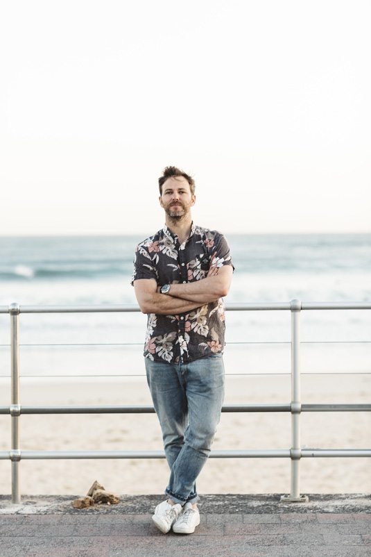 L’océan est le seul endroit qui me permette de faire une pause dans mon quotidien, de prendre vraiment du bon temps. Il a toujours été là et occupe une place très importante dans ma vie. En grandissant à Sydney, on n’est jamais très loin de la côte. J’ai commencé à surfer assez tard, vers 16 ans. Avant cela, je faisais du bodyboard, comme beaucoup de gamins dans les années 80, début 90. Donc oui, on peut dire que j’aime le surf et l’univers qui l’entoure, même si je ne suis pas un super surfeur. Jim, lui, en est un, et un très bon !