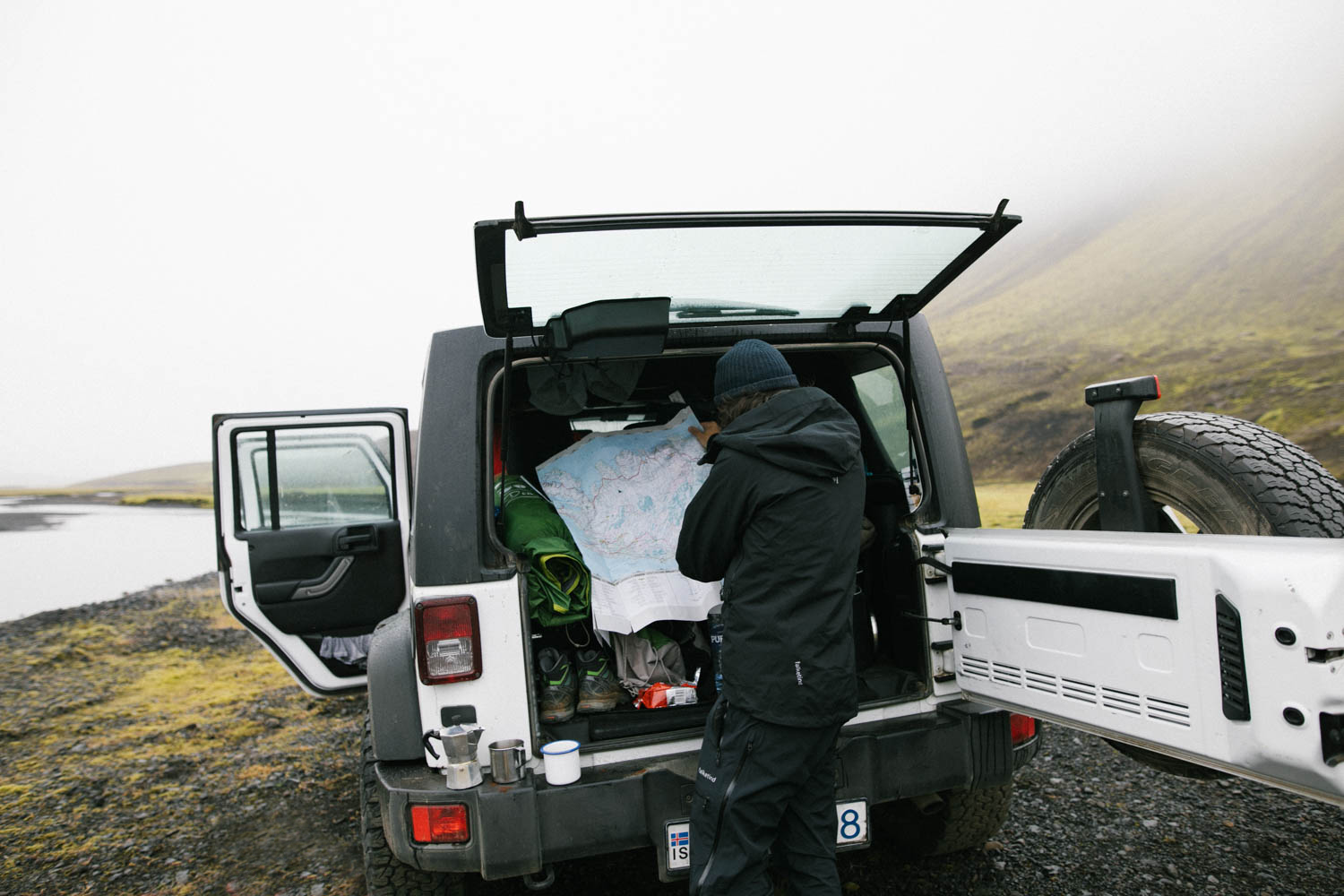 L’eau est un élément incontournable de l’île. Elle offre de drôles de chasses au trésor. Au huitième jour de notre aventure, on est partis à la recherche de cette source chaude perdue au milieu du désert, que de mystérieux internautes conseillent. On suit à vue, durant plusieurs heures, une piste à peine tracée que personne n’a dû emprunter depuis longtemps. C’est peine perdue. Il est 19h, la nuit tombe, le brouillard aussi. Impossible de rebrousser chemin dans ces conditions : les rochers à peine visibles, disséminés çà et là, ne feraient pas de cadeau à la Jeep. On décide de passer la nuit dans ce décor irréel. Notre valeureuse tente, une nouvelle fois ceinturée à la voiture pour éviter que les rafales de vent ne la kidnappent, ne nous a toujours pas pardonnés. Les noodles avalées à la va-vite nous réchauffent un peu avant l’appel de nos sacs de couchage.