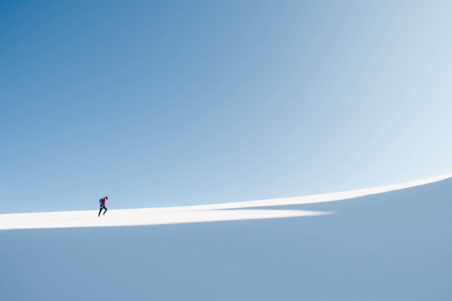 Cap au Nord. On chausse les crampons, on s’encorde. Une dernière tournée de crème solaire sur le nez et on commence l’ascension derrière nos deux guides, Aurélien et Antonin. À cette altitude, on progresse lentement. D’autant plus que nos crampons s’enfoncent parfois lourdement dans la neige fraîche. On s’accorde aussi un peu de temps pour prendre des photos, tout en gardant un oeil sur la montre.