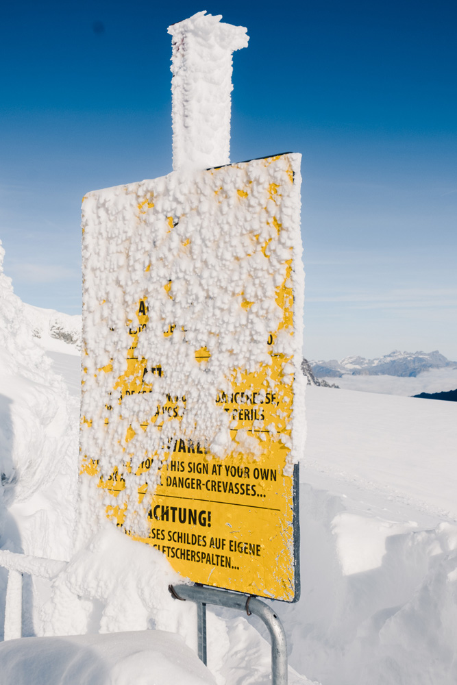 Chaque pas est largement récompensé par la vue vertigineuse qui nous attend au sommet. Nous voilà en plein au coeur du massif, entourés de ses géants enneigés. Mais à peine le temps de boire une gorgée et il est l’heure de repartir.