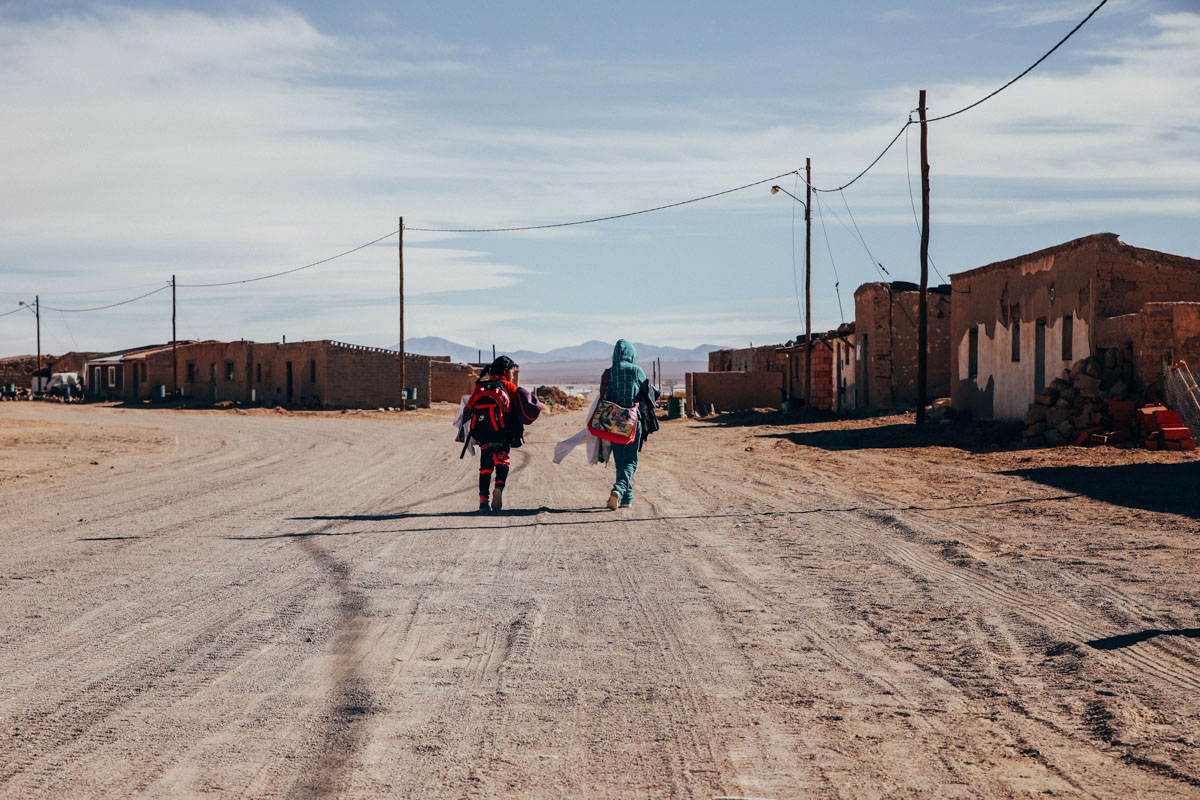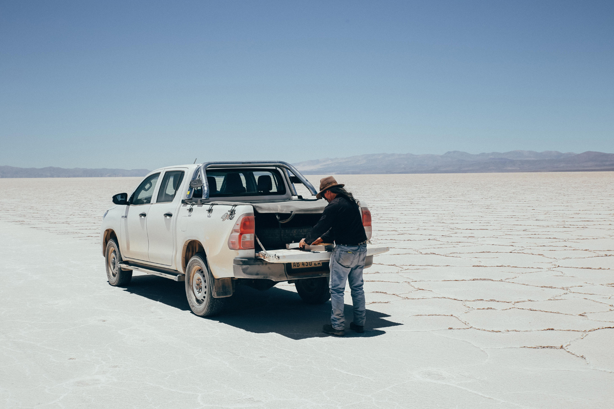 Nous faisons le chemin en sens inverse pour revenir vers Tolar Grande. Le soleil se couche et je m’isole sur une des hauteurs du village pour l’observer en train de se coucher. Il passe lentement derrière les montagnes jusqu’à disparaître complètement. Principalement occupée par des mineurs travaillant l’extraction du lithium, la vie à Tolar Grande est aux antipodes de ce que je connais. Les conditions extrêmes et le ravitaillement difficile appellent à la plus grande prudence. Chaque geste compte, les ressources sont rares et le gaspillage est proscrit. On réapprend à vivre, profitant du strict minimum, tout en appréciant la nature autour de nous. Chaque habitant dégage une force et une résistance rare, partager leur vie durant ces quelques moments se révèle véritablement inspirant. C’est probablement ce que j’étais venu chercher en venant ici.