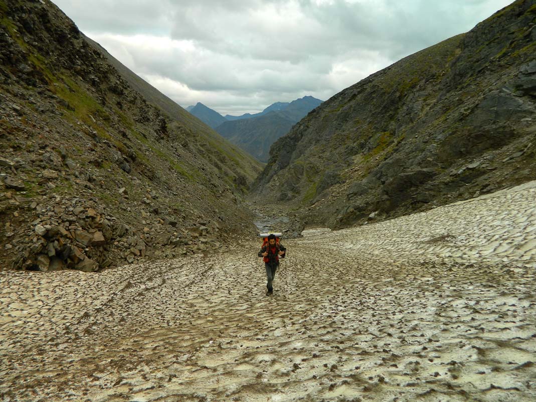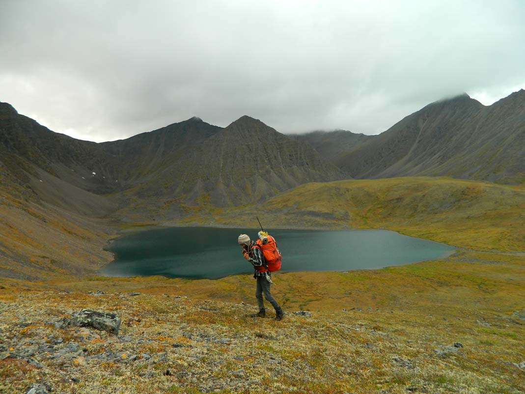 Je plie mon camp assez tôt et commence à marcher. Il faut à tout prix que je parvienne à faire plus de quinze kilomètres par jour ou je risque d’y être encore à la tombée des premiers flocons. Nous sommes le 15 août et l’été commence déjà à plier bagage dans le nord de l’Alaska. Voilà maintenant deux semaines que je n’ai vu aucun signe d’humanité. Je suis seul au milieu de la nature sauvage, bien au delà du cercle polaire Arctique. Je marche actuellement sur le versant d’une chaîne de montagnes, deux-cents mètres au dessus de la rivière Tynanyvuk qui m’indique le Nord.