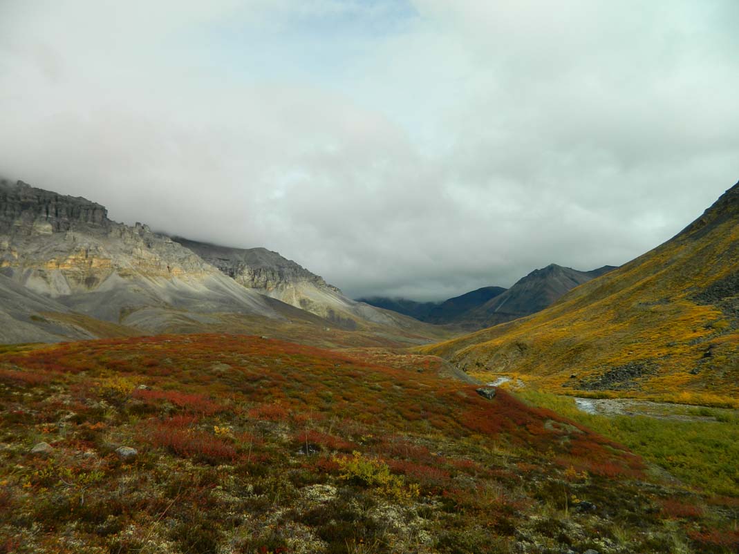 Je monte des collines puis les redescends, traverse des creeks en sautant d’une roche à une autre. La rivière tourne légèrement vers l’ouest et en suivant son cours, j’aperçois tout au Nord, à des dizaines de kilomètres, les montagnes de Brooks que je dois traverser. Elles sont immenses, encore plus grandes que les deux rangées que je longe actuellement. Il me semble apercevoir de la neige à leur sommet et…