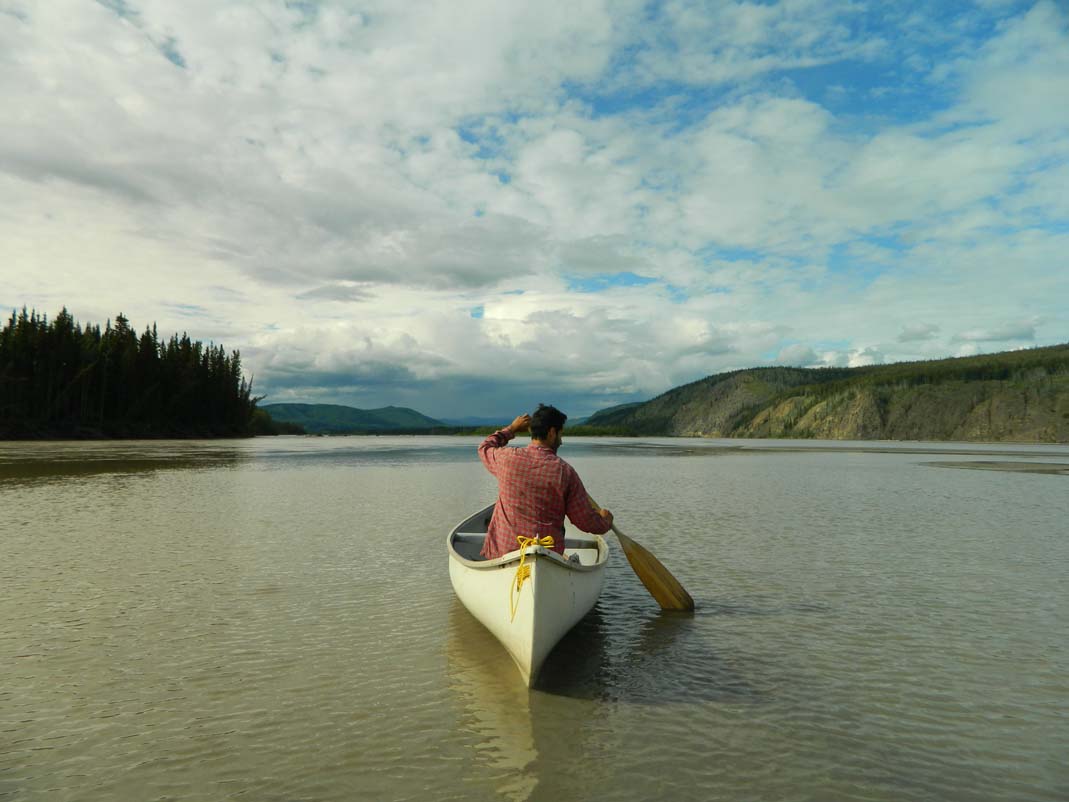 Partout autour de moi, la végétation se fait plus rare. Après bientôt trois mois passés à pagayer et à marcher vers le Nord, j’y suis enfin. Je suis sur le point d’entrer là où il fait si froid que plus aucun arbre ne pousse. Je m’apprête à faire mes premiers pas dans la toundra. Parfois la rivière se resserre et ses rives s’élèvent d’un coup de plusieurs dizaines de mètres, créant de véritables canyons. C’est très beau cette roche blanche qui contraste avec le bleu turquoise de l’eau. Je dois escalader pour poursuivre ma route. Il apparaît parfois des plages de galets sur plusieurs dizaines de mètres, où il est aussi très agréable d’avancer.