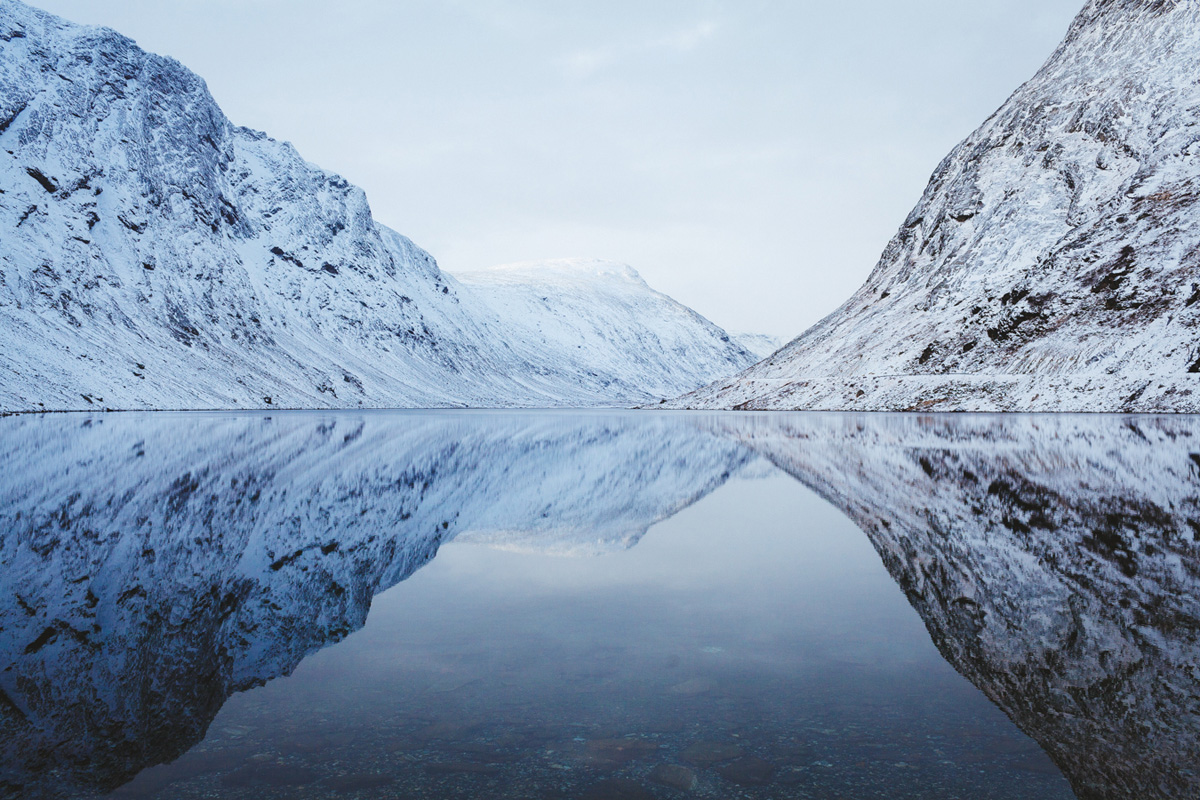 Je suis quelqu’un d’assez solitaire, j’aime bien me promener tout seul dans la nature, même si je suis un peu en contradiction car j’aime bien aussi aller dans la nature en étant entouré. Mais j’aime quand même montrer des gens sur mes images qui sont tout seuls. On voit beaucoup ça, je n’ai rien inventé, mais cette idée d’avoir des gens qui sont un peu dominés par le paysage immense, c’est vraiment quelque chose qui m’a toujours attiré. Parce que ça reflétait un peu ce que je faisais… Je me promenais tout seul sur ma moto, ou tout seul dans la montagne. Je n’ai jamais fait d’autoportrait, donc j’emmenais quelqu’un avec moi. Donc c’est une des choses. D’autre part, j’aime aussi l’eau. Quand j’étais petit, mon père, qui est ingénieur des eaux et forêts, avait un livre qui s’appelait « L’eau c’est la vie ». Il m’a donné ce livre et ça m’a beaucoup marqué. Ça expliquait le fonctionnement de la météo, des nuages… L’eau a toujours été quelque chose de très important. Puis la mer, et surtout les lacs de montagne. C’est difficile de parler de son propre travail mais je dirai que c’est ça qui me définit le plus finalement. Tout ce qui est dans les éléments, dans la forêt, dans la montagne, et l’individu seul.