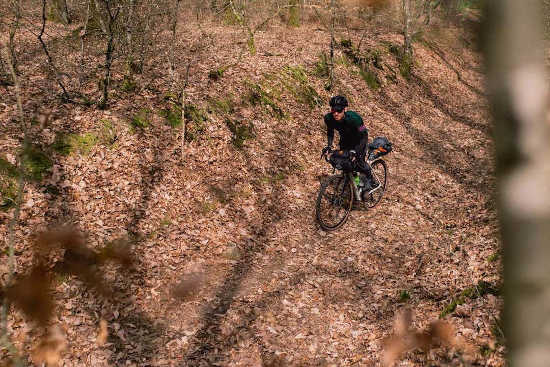 On décide de partir tôt. En groupe, mieux vaut ne pas trop s’attarder au petit-déjeuner si on souhaite arriver avant la tombée de la nuit. Les petites routes de campagne goudronnées, dont on profite pour avaler les kilomètres, alternent avec des chemins caillouteux. Parfois boueux ou recouverts d’un épais tapis de feuilles en forêt, ils font patiner les roues et obligent à pousser les vélos dans les côtes. Ce n’est pas une mince affaire.