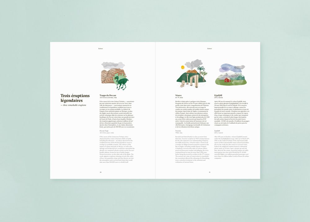 – Un dossier sur les volcans qui vous emmène à la découverte de 10 majestueux monstres de roche qui ont fait et font encore aujourd’hui l’histoire de notre planète