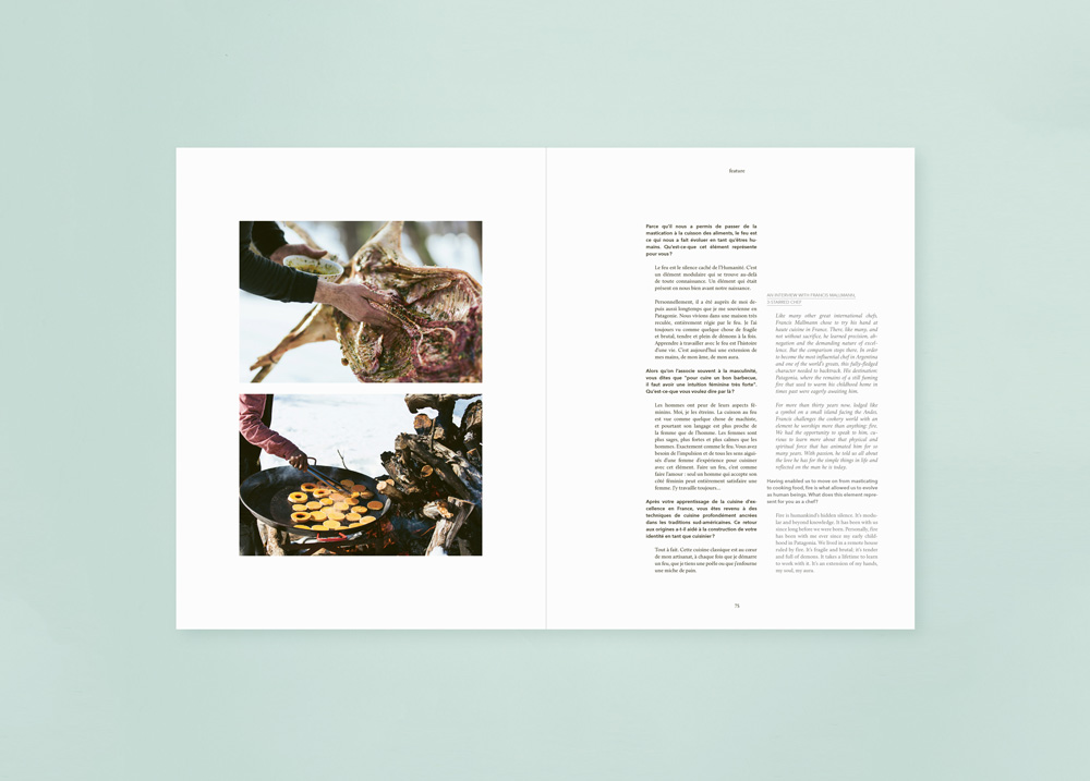 – Une interview de Francis Mallmann, célèbre chef qui vit coupé du monde sur une petite île au coeur de la Patagonie argentine et a élevé la cuisson en fosse et au feu de bois jusque sur les plus grandes tables internationale
