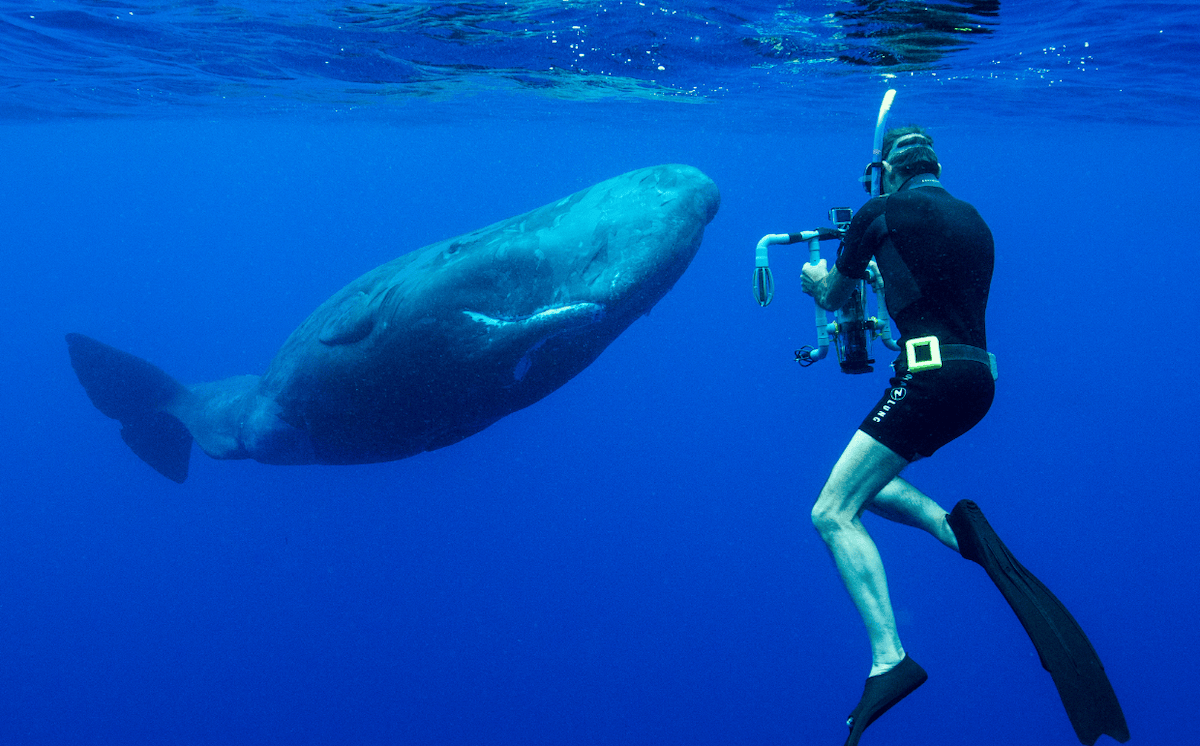 Il suffit parfois d’une rencontre pour tomber amoureux. Une rencontre avec un poulpe pour tomber amoureux de la mer. Et y plonger durant toute son enfance. Une rencontre avec une raie manta pour changer son regard sur les animaux à sang-froid. Docteur en océanographie et plongeur professionnel, il a dédié sa vie à l’océan. Ancien conseiller scientifique du Commandant Cousteau sur la Calypso, il a parcouru les fonds-marins pour étudier, comprendre et ramener des images de ce dernier grand monde sauvage, où l’on peut approcher les animaux sans qu’ils fuient. En 2006, sur le tournage du documentaire Océans, une nouvelle rencontre va changer sa vie. Embarqué loin du bateau, il va croiser le chemin d’un grand requin blanc.