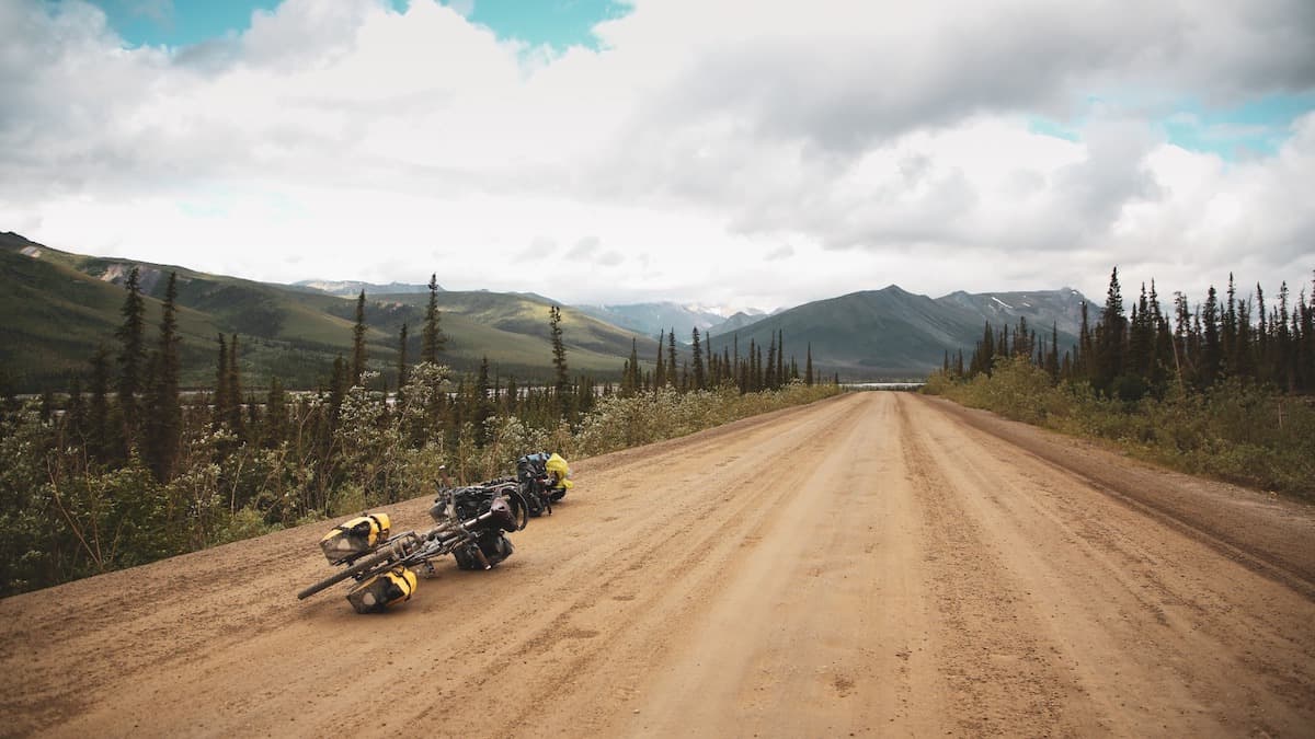 Si les premiers coups de pédales ont une odeur de liberté, le couple est vite rattrapé par la réalité. En effet, cette piste de 666 kilomètres est connue pour être l’une des plus dangereuses au monde. Au milieu de nulle part, sans aucun point de ravitaillement et avec une faune sauvage omniprésente, elle est aussi empruntée par d’immenses camions. Ceux-ci rejoignent la cité pétrolifère de Prudhoe Bay, projetant de la poussière, des graviers et des roches sur leur passage.