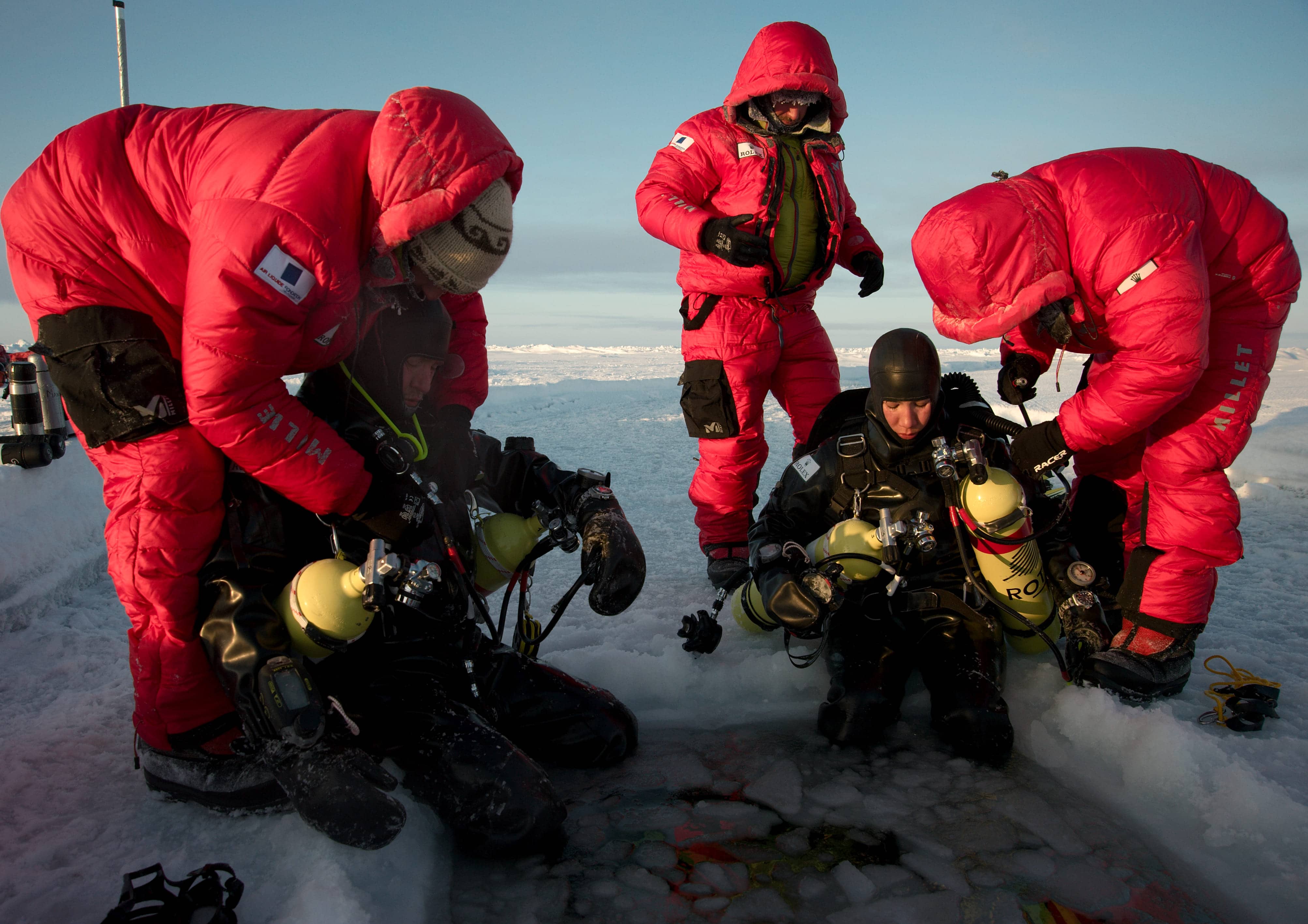 En mars 2010, Ghislain Bardout et Emmanuelle Périé-Bardout partent avec leur équipe pour une expédition à ski de 45 jours, ponctuée par une cinquantaine de plongées entre le pôle nord et la côte canadienne.
