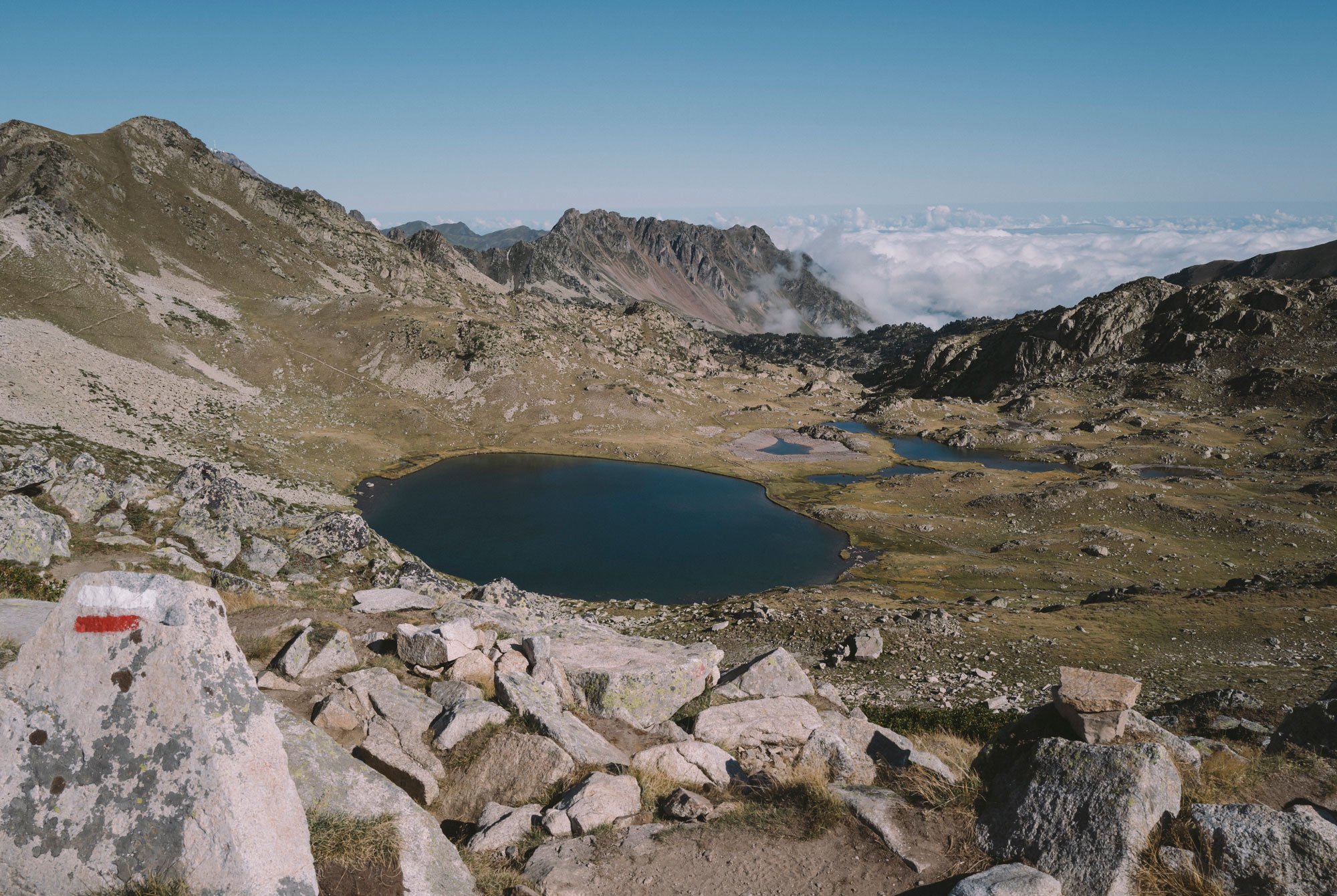 Au petit matin, on poursuit notre chemin vers le lac de Caillauas. Ensuite, on poussera jusqu’à celui de Pouchergues. Le groupe de randonneurs avec qui nous avons partagé notre dîner nous l’ont vivement conseillé. On se remet en jambes sur le sentier qui monte en douceur. Tout comme la brume, bien décidée à nous accompagner aujourd’hui. Notre itinéraire se fait de plus en plus difficile à trouver. On a ni téléphone, ni GPS. Une bonne vieille carte IGN fait des merveilles en temps normal, mais s’avère moins efficace quand on ne voit pas plus loin que le bout de ses pieds.