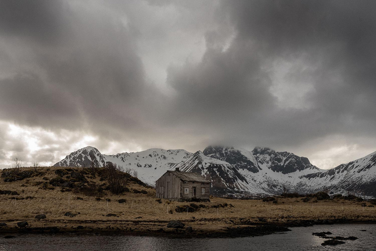 J’emprunte la route de la côte Ouest pour rejoindre les premiers fjords et me mettre dans le bain. La beauté des paysages qui m’entourent me frappe immédiatement. C’est très clair, ici, l’humain respecte la nature ! Pour bivouaquer, j’ai également l’embarras du choix. Il est même difficile de choisir, tant chaque endroit donne envie. Je m’arrête finalement près d’une petite cabane rouge typique au pied d’un fjord, j’ai un peu de travail de post production à faire. Un shooting photo que j’ai réalisé en chemin sur le thème scandinave. Quel endroit mieux adapté que les fjords pour travailler ces images !