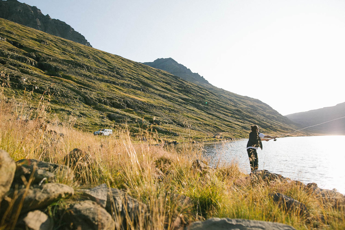 Malgré les conditions souvent difficiles, il faut souligner qu’on a eu la chance de pêcher en t-shirt sous un magnifique soleil. Par ailleurs, cheminer au fond de l’Islande ne s’adresse pas qu’aux plus aventuriers d’entre nous. Sur le chemin du retour, depuis la petite ville de Myvatn, tout au nord du pays, nous décidons de retourner à Reykjavik par une piste traversant l’île par le centre et les Highlands. Sur cette route longue et monotone, nous tombons sur un charmant refuge installé derrière une colline et, miracle, équipé d’une piscine naturelle, alimentée par une source chaude. On y rencontre une petite famille danoise. Les parents, et 3 enfants, tout sourires, partis en van pour deux mois d’aventure. Une bonne organisation pour ne pas faire déraper le budget, car les prix islandais peuvent en effet être aussi vicieux que les températures, et voilà un été de rêve pour les têtes blondes.