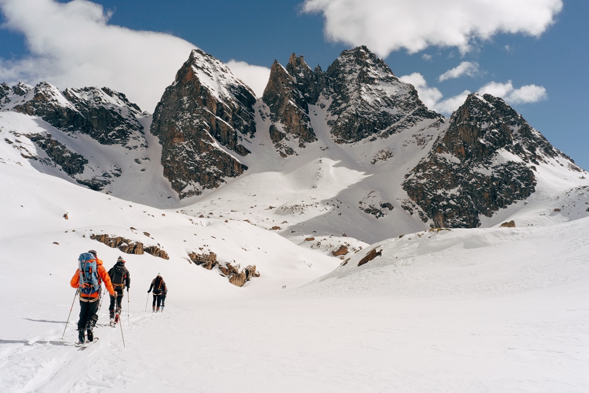 J’ai réalisé ce raid à ski durant 5 jours avec Gilles Fleury, guide de haute montagne à Chamonix, mais aussi Eline, Quentin et Tristan comme compagnons de cordée. Ces quelques jours sont l’occasion pour nous, camarades de course, de nous découvrir, de vivre au rythme de la montagne, et de traverser des lieux sauvages à la fois beaux et hostiles tout en jouissant de magnifiques descentes, véritable récompense du skieur de randonnée.