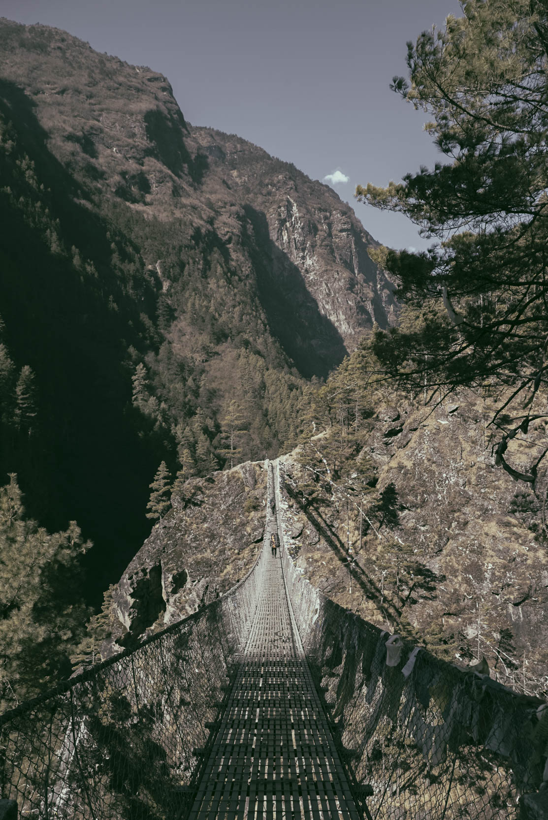 Le mois de février est la basse saison au Népal. Les conditions sont mauvaises pour un trek dans le parc national de Sagarmatha. Cette région protégée et inscrite au patrimoine mondial depuis 1976 est presque vide. Nous emboîtons le pas de Dev, notre guide. Nos échanges en anglais sont approximatifs. Mais sa bienveillance est rassurante. Nous marchons en direction de Namche Bazaar, le dernier grand village, la dernière douche, les derniers magasins, et l’endroit ou nous rencontrons Mohan, notre porteur pour les 13 jours à venir.