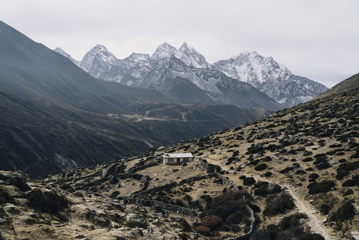 Les jours suivants, nous passons Dole, Luza, Macchermo, pour arriver à Gokyo. Nous sommes à 4 750 mètres. L’altitude où les arbres ne poussent plus depuis un bon moment. Dans les Tea Houses — habitations dans lesquelles nous trouvons gite et couvert durant ce trek dans la région du Sagarmatha — on se chauffe en allumant un poêle central qui brûle de la bouse de Yak, à défaut du bois.