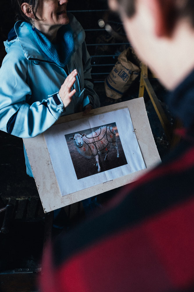 La visite se poursuit au grand air pour laisser les bêtes manger l’herbe du champ. Nous découvrons alors les moutons Shetland qui ne se laissent pas facilement approcher. Nos hôtes nous parlent à la fois de la richesse de la région, de l’histoire de cette ferme mais aussi du savoir-faire qui se cache derrière la laine.