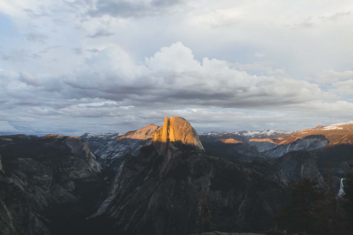 J’ouvre les yeux et me demande un instant où je suis. Le temps de reprendre mes esprits et me voilà en route pour ma prochaine destination : Glacier Point. À 2200 mètres d’altitude, je domine l’horizon d’un simple regard. Sur la route, quelques couches de neige résistent tant bien que mal au printemps. Devant moi se dresse tout ce que la vallée recèle de trésors : El Capitan, Yosemite Fall, le Half Dome et Nevada Fall composent le décor.